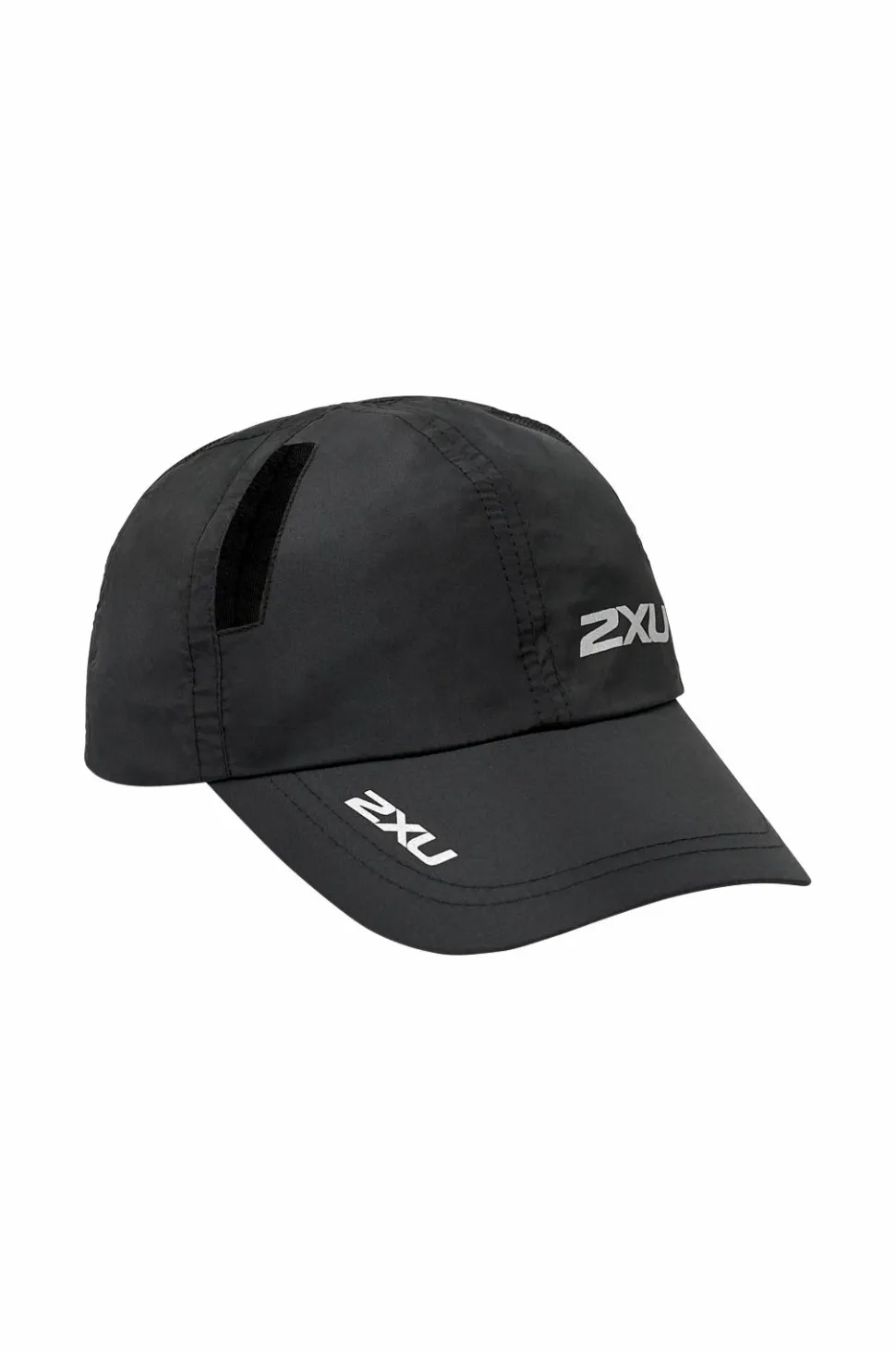 Løbekasket med bøjet skygge og detaljer i ventilerende mesh. Refleksdetaljer. Justerbar velcrorem bagpå.