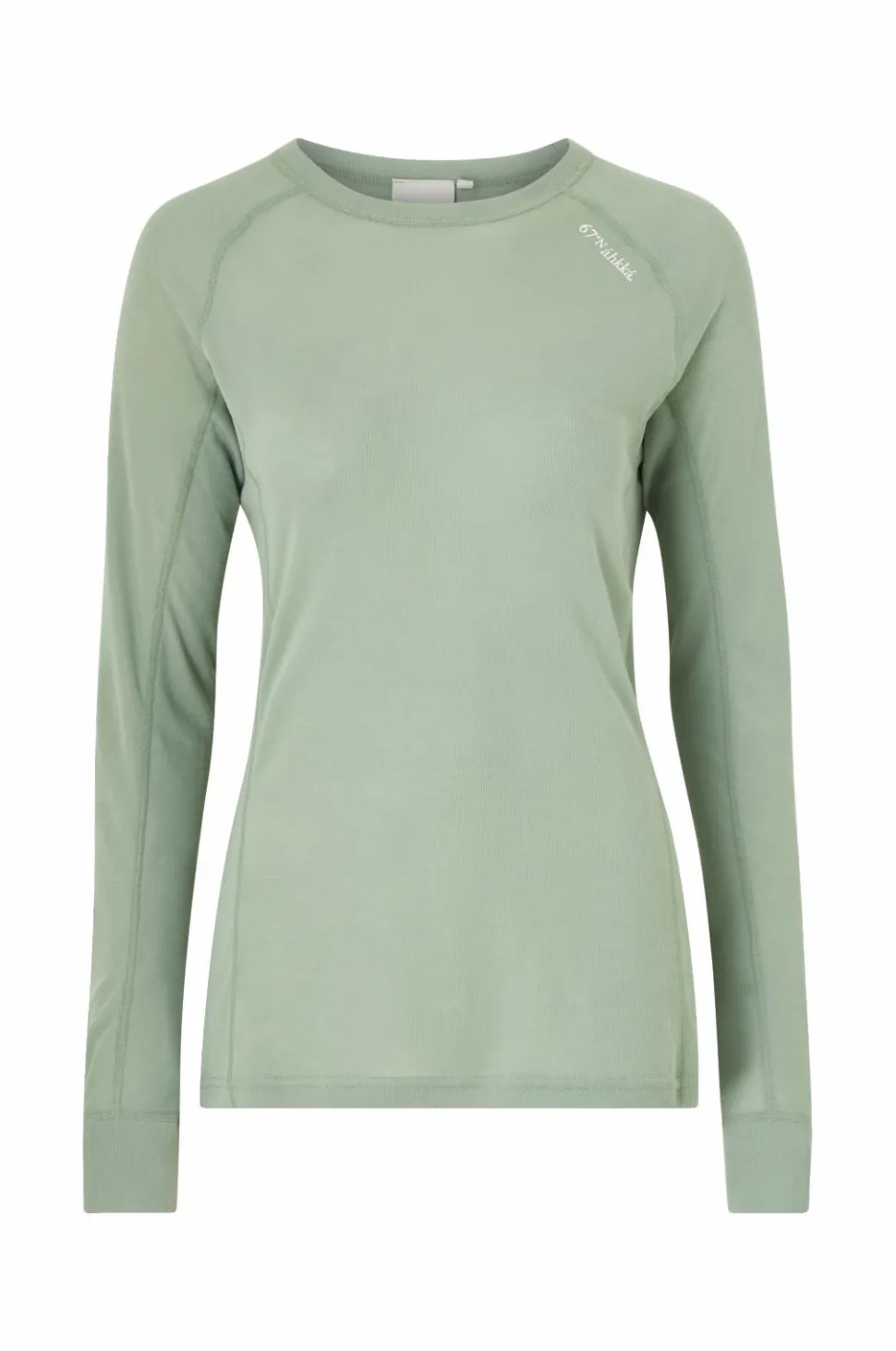 Behagelig undertøjstrøje fra Áhkká i hurtigtørrende kvalitet, der holder på varmen og transporterer fugt væk. Glatte flatlock-sømme, der ikke kradser mod huden. Lag 1. Længde bagpå ca. 73 cm i størrelse 34/36, lidt kortere foran.
