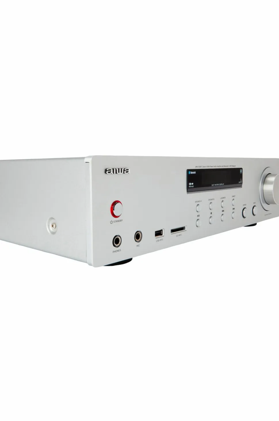 Oplev 120 W udgangseffekt med AIWA AMU-120BT-forstærkeren med Bluetooth v5.0 og en trådløs rækkevidde på 10 m og understøtter MP3-afspilning via USB og SD-kort op til 128 GB. Med 7 analoge lydindgange og fire højttalertilslutninger tilbyder den omfattende tilslutningsmuligheder.
