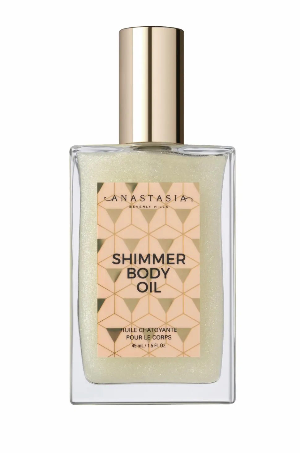Anastasia Beverly Hills Shimmer Body Oil er en luksuriøs, let kropsolie, der giver huden en solkysset glød og en fugtet fornemmelse. Den luksuriøse letvægtsformel lægger sig glat på huden og efterlader den med en silkeblød fornemmelse (aldrig fedtet). Denne antioxidantrige formel indeholder jojobafrøolie og sød mandelolie, som tørrer ind på et øjeblik og efterlader huden med et smukt, strålende skær, der lyser op. Den udsender en superfin tåge, der lægger sig vægtløst på huden og har en delikat duft af kokosnød og vanilje.
