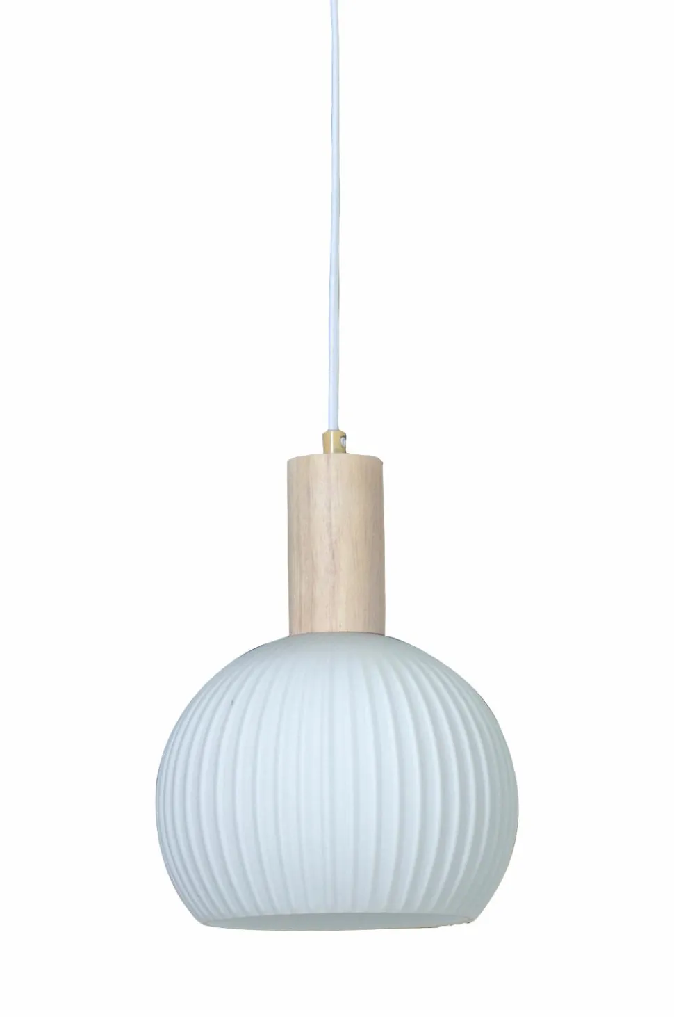 Lapponia vinduespendel i glas og hvidt olieret træ tilføjer et naturligt og varmt touch til dit hjem. Med en ribbet glaskop, der skaber et jævnt og blødt lys. Lapponia fungerer godt som stemningsbelysning i stuen, køkkenet og soveværelset. Et stilfuldt valg til det skandinaviske eller moderne hjem.