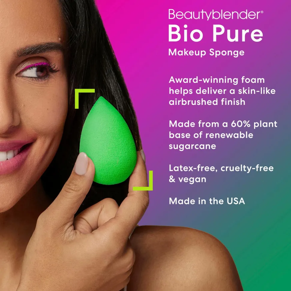 Beautyblender, prisbelønnet som bedste makeupsvamp, nu grønnere end nogensinde! Beautyblender Bio Pure består af 60% plantebaseret materiale. Denne nyeste innovation er en kombination af Beautyblenders unikke look med smidig blending af makeup for et naturligt og rent look. Beautyblender Bio Pure gør det utroligt let at lægge foundation, pudder og alle andre hudprodukter. Beautyblender Bio Pure er latexfri og duftfri.