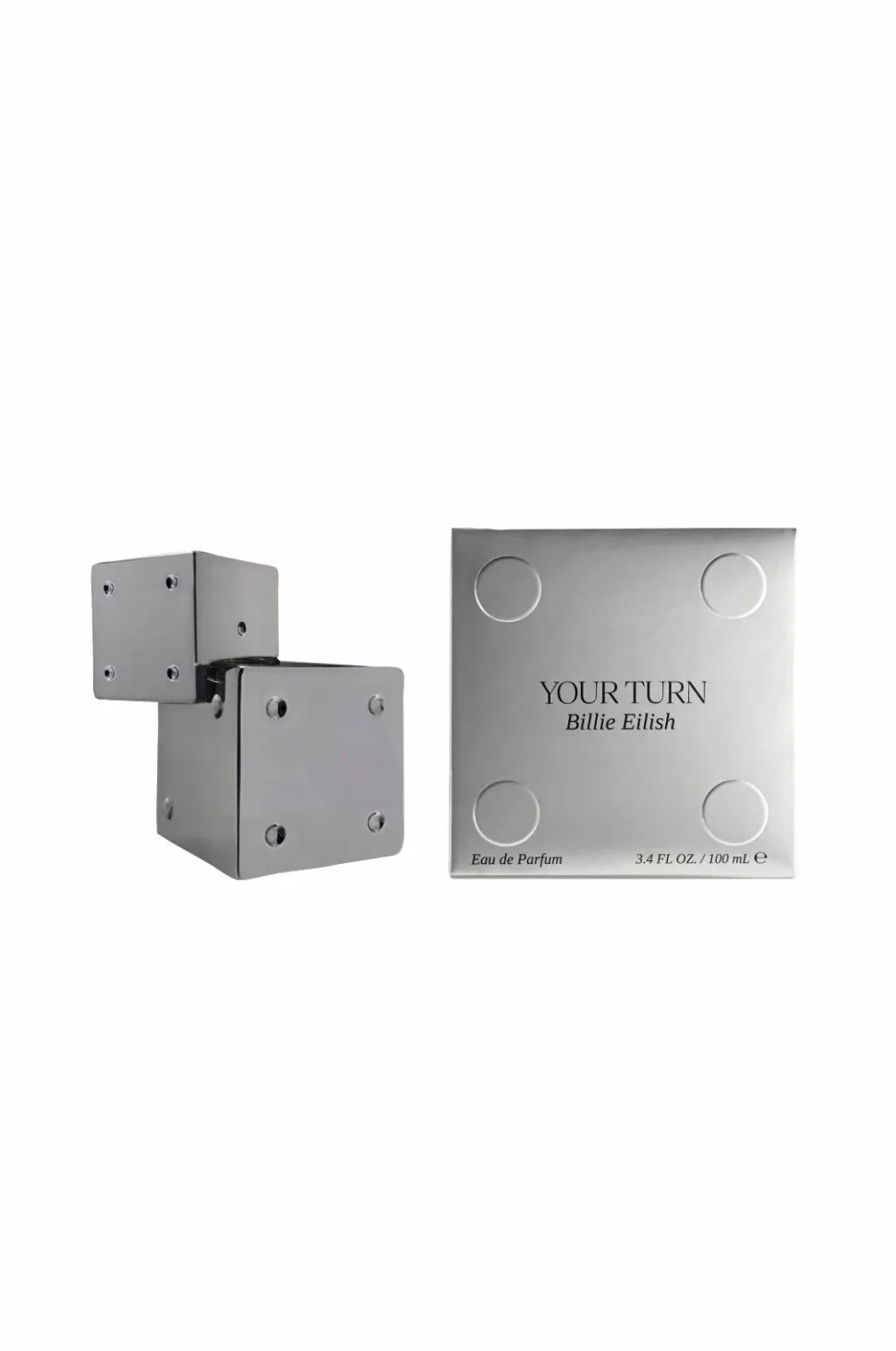 Your Turn-flasken er inspireret af Billies værdsatte elementer af personligt udtryk og boligindretning, udformet som en stablet terning med prægede kerner. Dens slanke, minimalistiske linjer og sølvkrom-finish gør den til et moderne kunstværk, der bringer både legesyge og fascination til ethvert rum og afslører duftens dristige og fængslende natur.