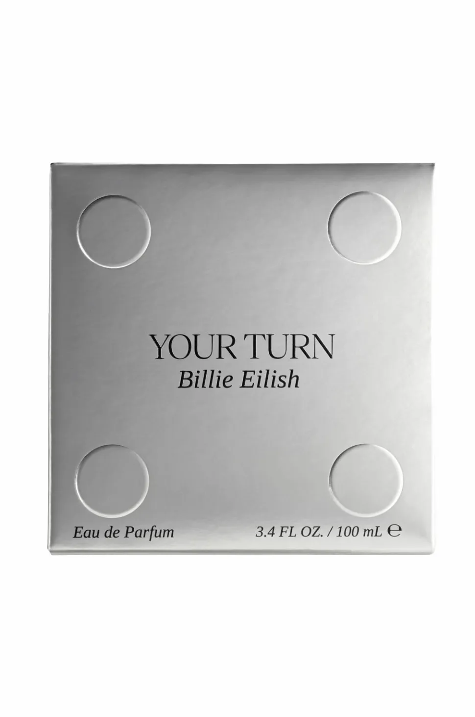 Your Turn er en dristig og fængslende duft fra Billie Eilish, der er inspireret af kontrasten mellem styrke og blødhed. Den åbner med en lys eksplosion af bergamot, kardemomme og frisk ingefær, som fører ind i et forførende hjerte af fløjlsblød ferskenhud, jasmin og kokosvand. En dyb base af sandeltræ, moskus og bæredygtig Sylvamber™ pakker duften ind i en varm, dvælende finish, der efterlader et varigt indtryk.