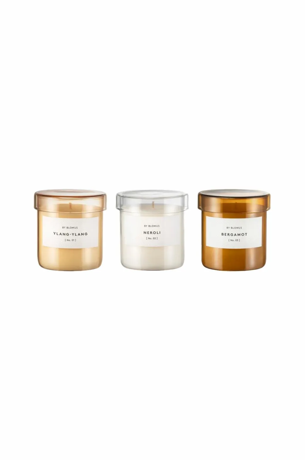 gavesættet indeholder tre velduftende duftlys i duftene: