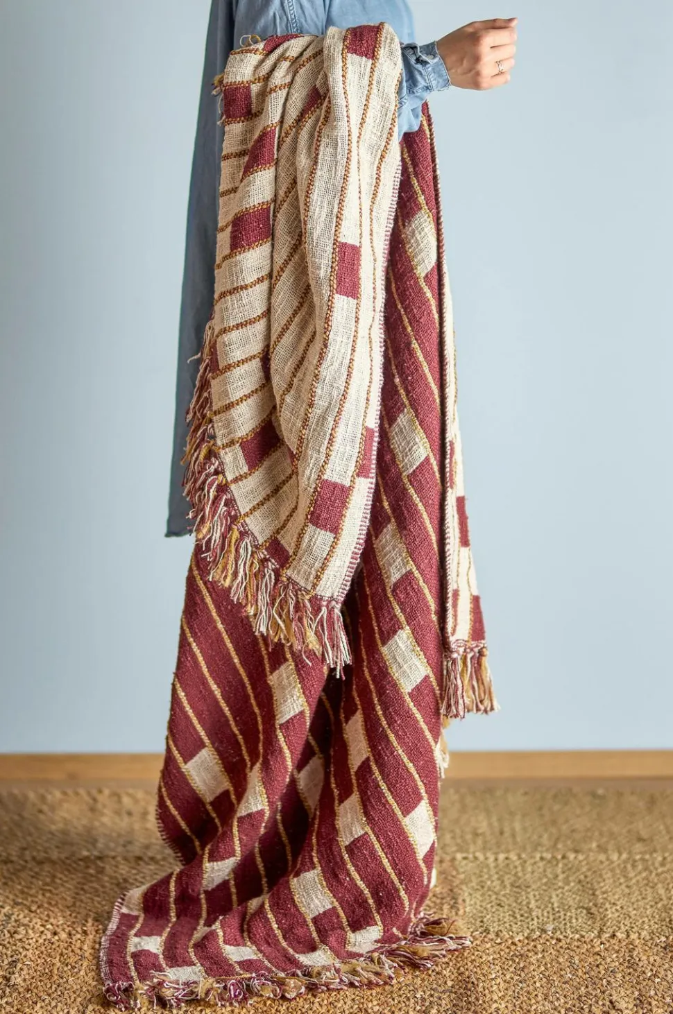 Cang plaiden fra bloomingville er vævet i bomuld med brede striber. De dekorative frynser langs kanterne giver et afslappet og hyggeligt look. Perfekt til at skabe varme og komfort i stuen eller på terrassen.