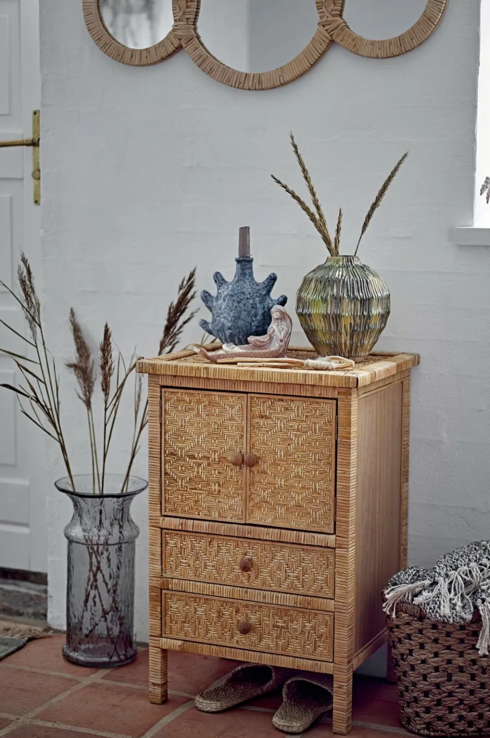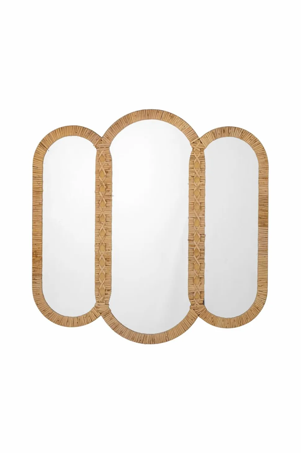 Cardiz-vægspejlet fra creative collection består af tre ovale spejle indrammet i vævet rattan. Det bløde design og det naturlige materiale skaber et harmonisk og dekorativt look – smukt i entréen, stuen og soveværelset.