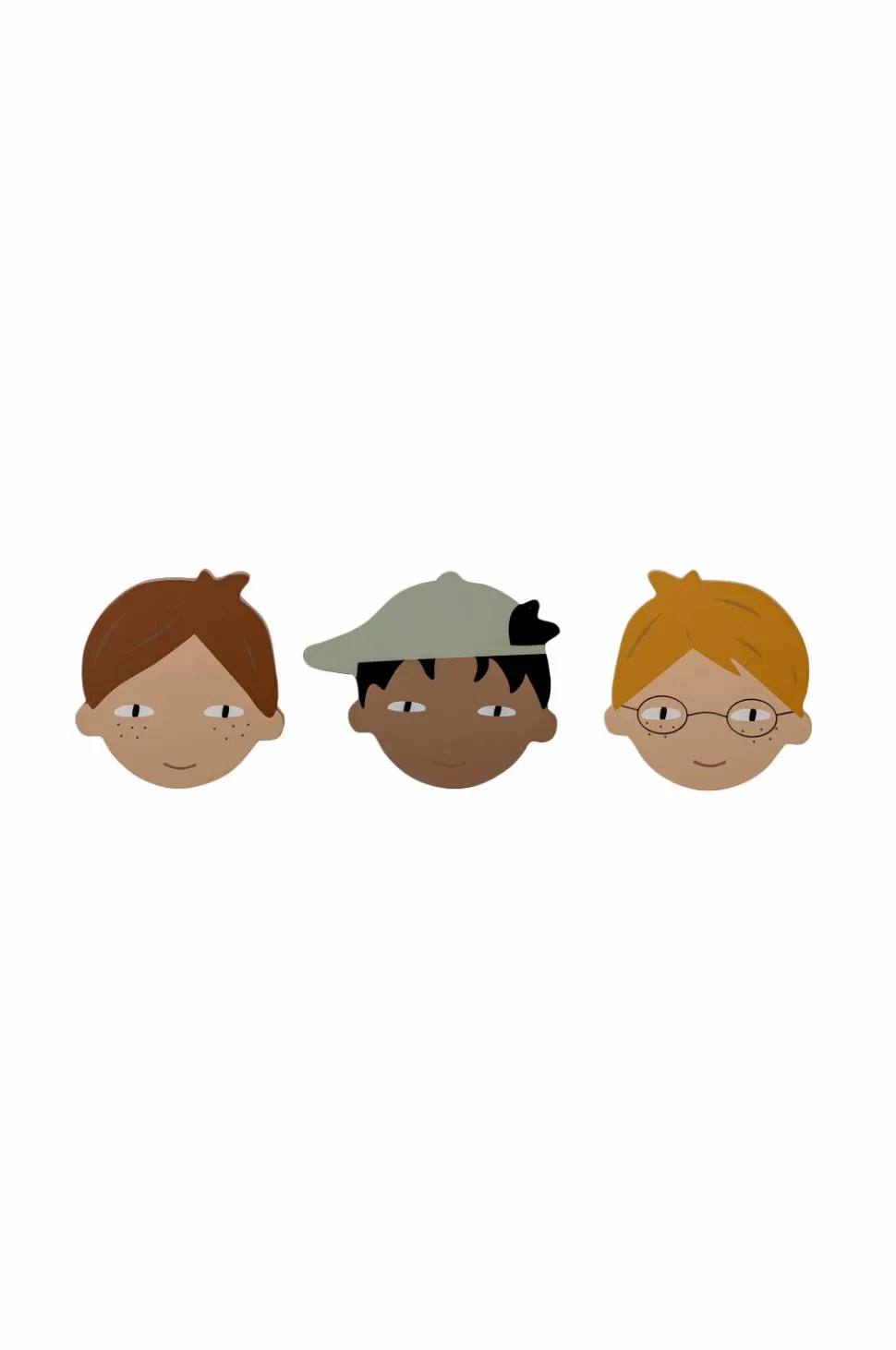 Simson kange fra Bloomingville MINI er malet med tre forskellige motiver med drengeansigter. Brug dem sammn eller hver for sig på væggen eller som håndtag på dit yndlingsskab. Leveres i en lille æske og er perfekt som gave. Sælges i 3-pak, mål L10xH8,5xB5 cm