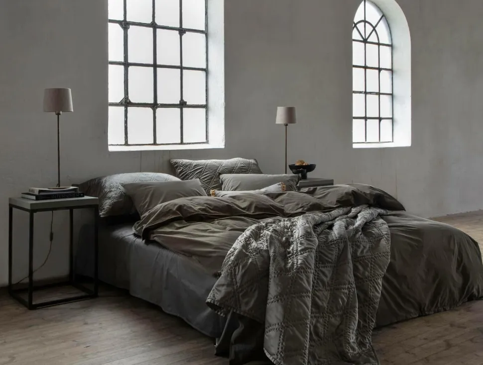 Elegant sengetæppe med håndquiltning til den indretningsbevidste. 100% polyester med silk look, håndquiltet med polyesterfyld