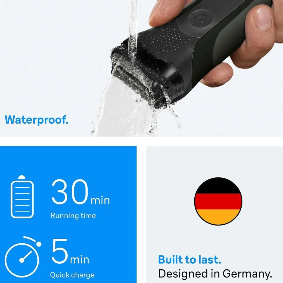 • Æsken indeholder 1x Braun Series 3 shaver, 1x beskyttelseshætte.