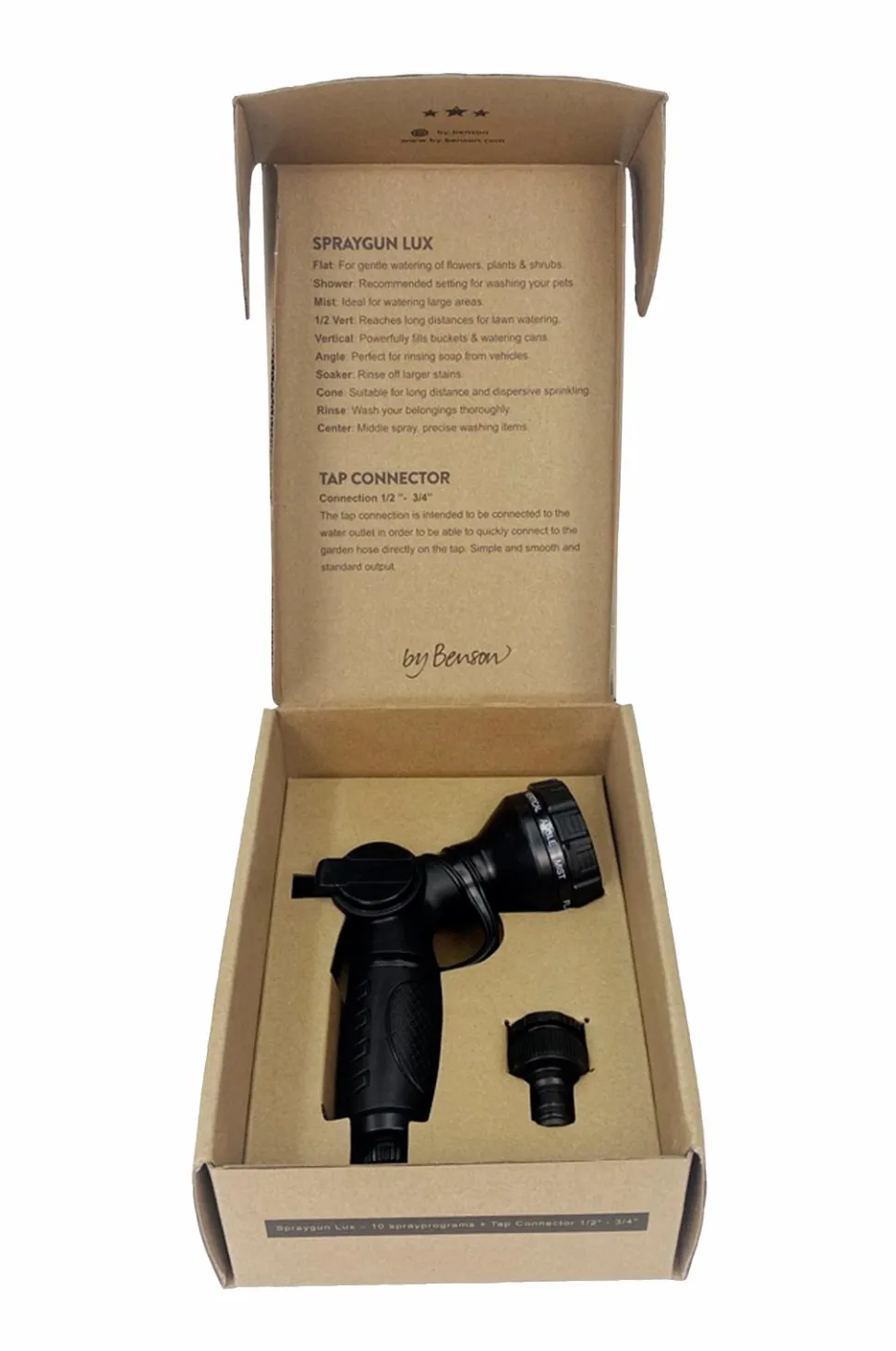Opgrader din vanding med denne Sprøjtepistol – Lux Sæt, der har 10 sprøjteindstillinger i et slankt design. Pakker med en vandhanekobling, det er en fremragende gave eller en luksuriøs forkælelse til dig selv.