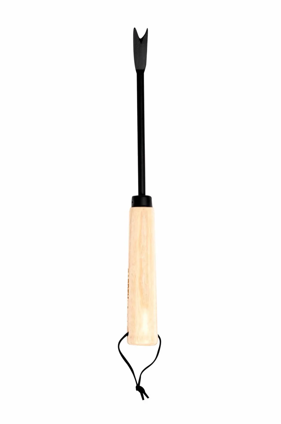 Det elegante ukrudtsjern, designet til at tackle ethvert stædigt ukrudt i din have. Fremstillet af sortlakeret metal og stilfulde håndtag af asketræ, kombinerer dette ukrudtsjern funktionalitet, holdbarhed og stil. Den praktiske læderrem gør det nemt at hænge op for synlighed og hurtig adgang.
