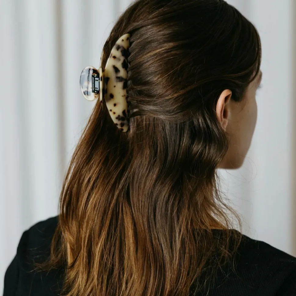 Stor hårklemme som holder håret på plads med sin kraftige klemme. Størrelsen gør, at den passer ekstra godt til længere hår. En skånsom hårpynt, der kan bruges på flere forskellige måder uden at slide håret.