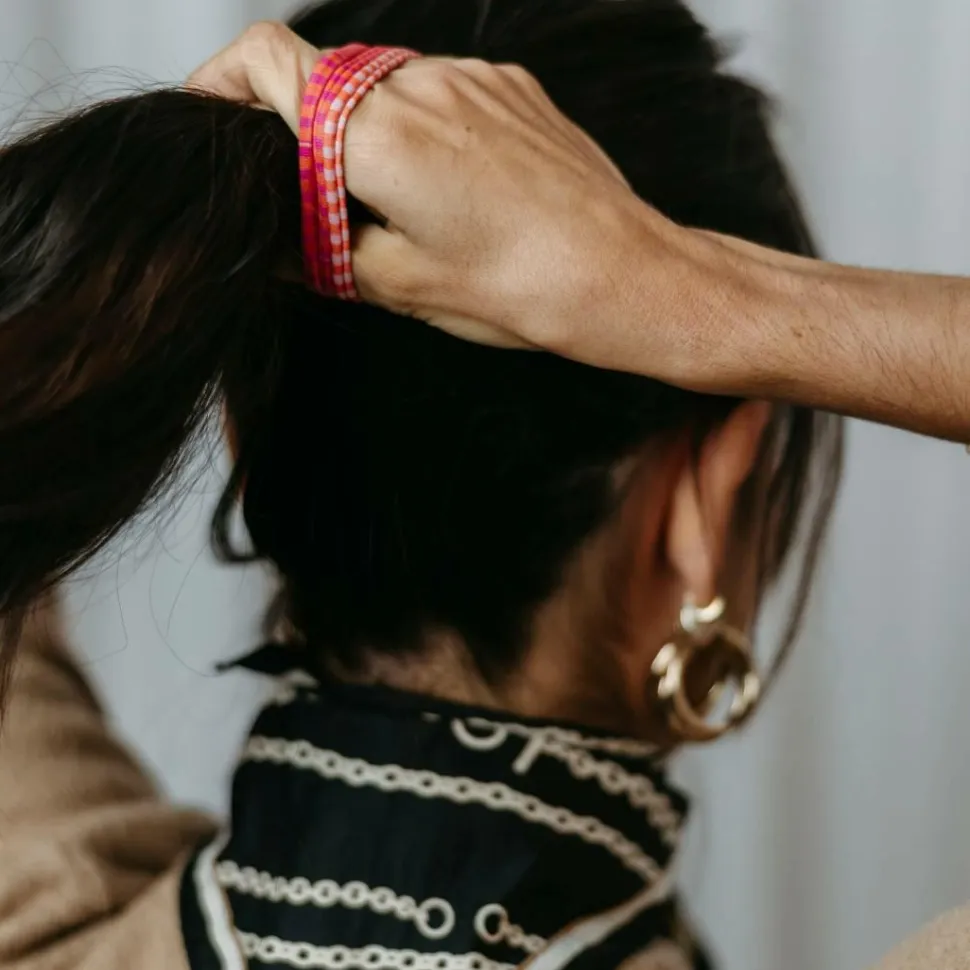 Hårelastikker i fire glade farvekombinationer, der ser lige så godt ud i håret, som de gør omkring håndleddet. Elastikken sidder godt og passer til de fleste hårtyper.
