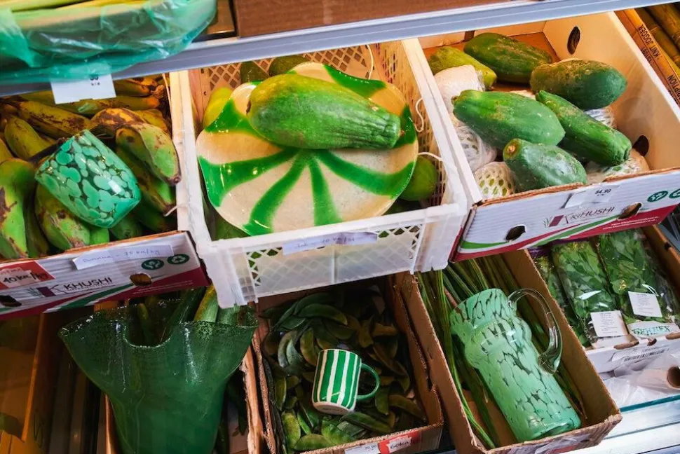 Vase Tiggy inviterer til den grønne skønhed, der giver os energi, lyst og skønhed. Formen minder os om store overhængende blade, der svajer i vinden med bløde bølgende bevægelser. En diskret stribe kan ses i vasens glas, den vokser opad og repræsenterer kraft og vilje. Brug med farverige blomster eller som en dekorativ ting på bogreolen. Vasen Tiggy er håndlavet og håndblæst, hvilket betyder, at alle eksemplarer er unikke.