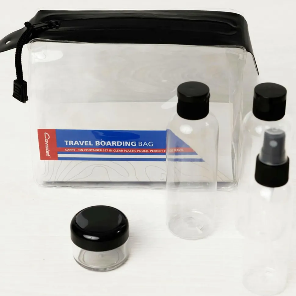 • Indeholder et sæt PET-rejseflasker i en plastpose med lynlås