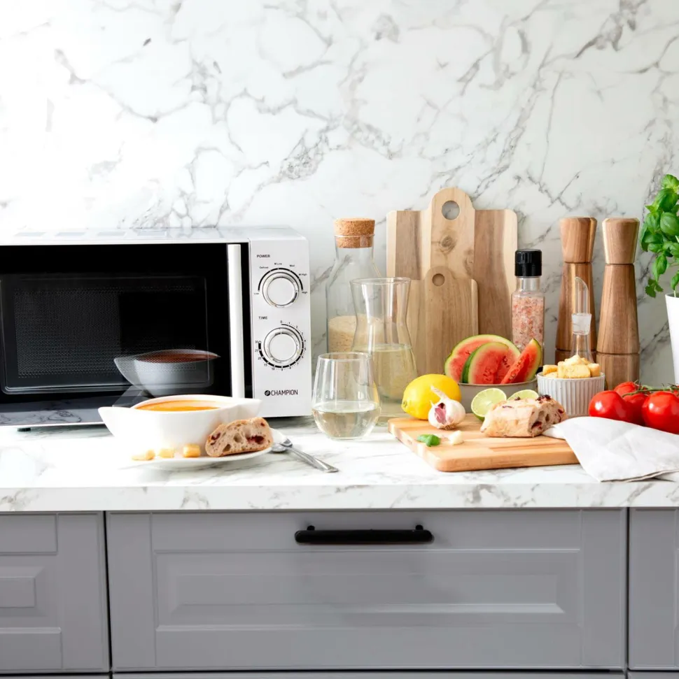 Champions Microwave Mechanical er et uundværligt køkkenredskab i den skandinaviske husholdning med en generøs kapacitet på 20 liter og stor indvendig højde. Den er udstyret med praktiske funktioner, der forenkler den daglige brug, f.eks. afrimning, roterende plade og timer.