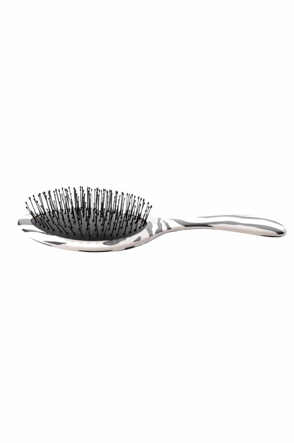 Hårbørste med skånsomme børster af nylon til vådt hår. Hårbørsten leveres i en praktisk toilettaske.
