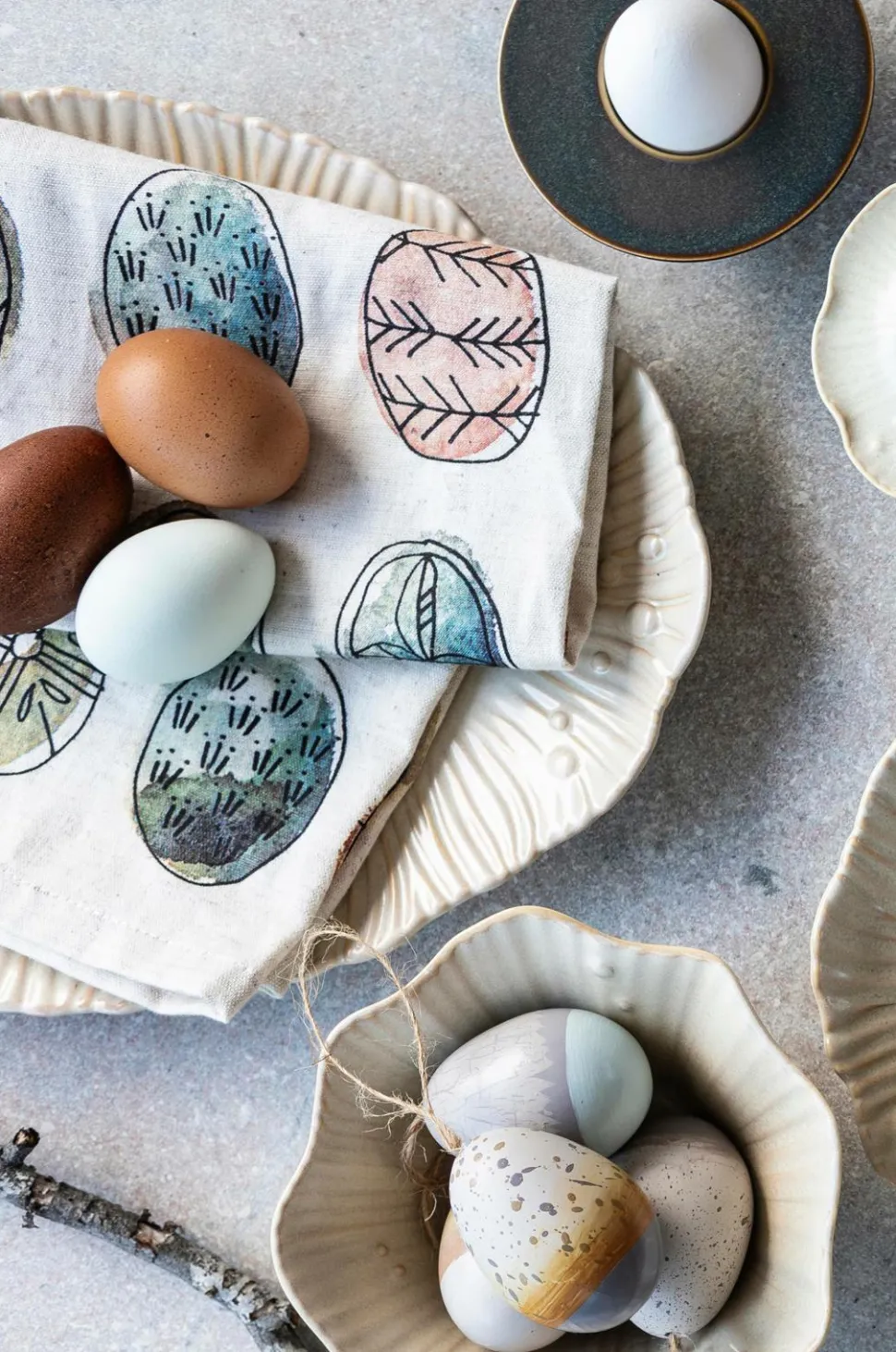 Køkkenhåndklæde ZEN. Håndmalet akvarelmønster trykt på et smukt stof af bomuldslin. Designet af Maria Söderberg.
