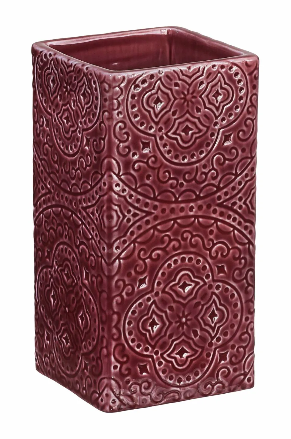 Keramisk tandbørsteholder med reliefmønster, der matcher sæbepumpen i samme serie. Den kan nemt rumme tandbørste og tandpasta. Designet af marita lord