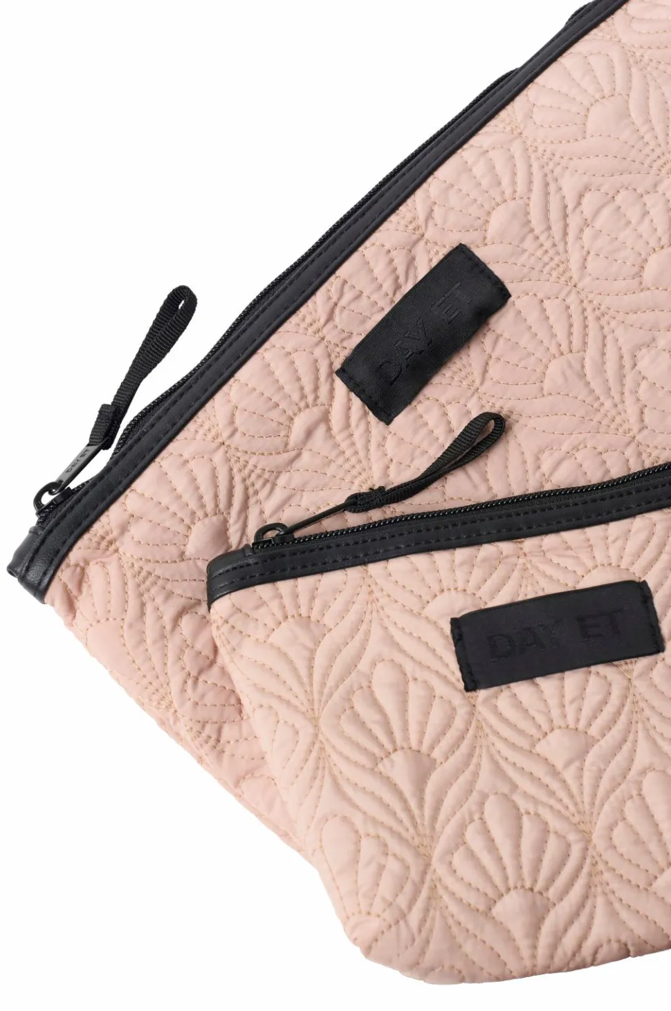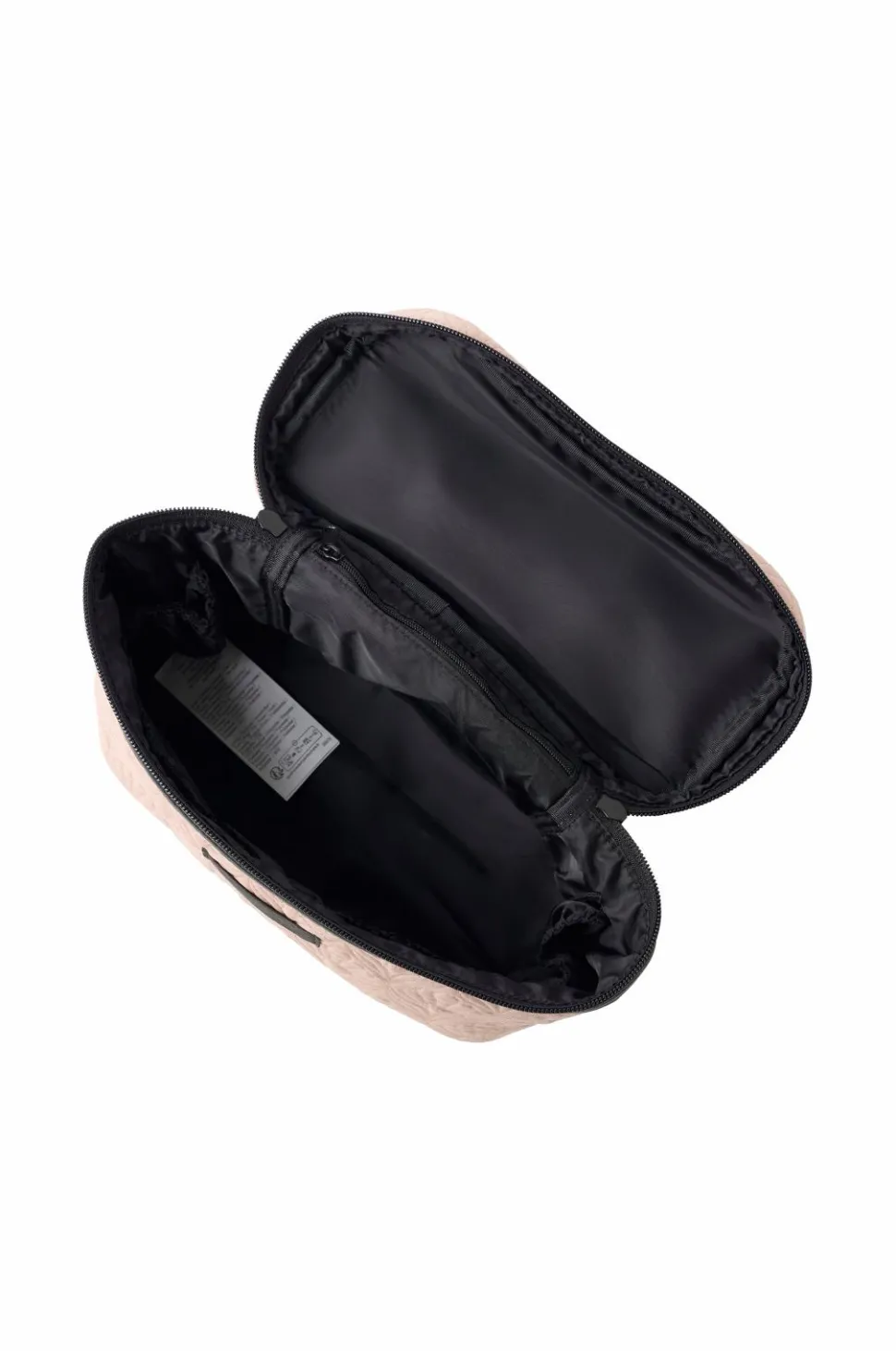 Et alsidigt sæt med tre quiltede toilettasker i forskellige størrelser og stilarter. Den flade version har to åbne rum, mens den kasseformede model er udstyret med elastiske stropper, et rum med lynlås og et håndtag – ideelt til både opbevaring og rejser. Alle toilettasker har lynlåslukning.