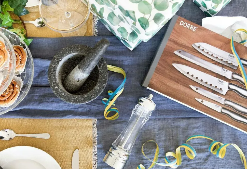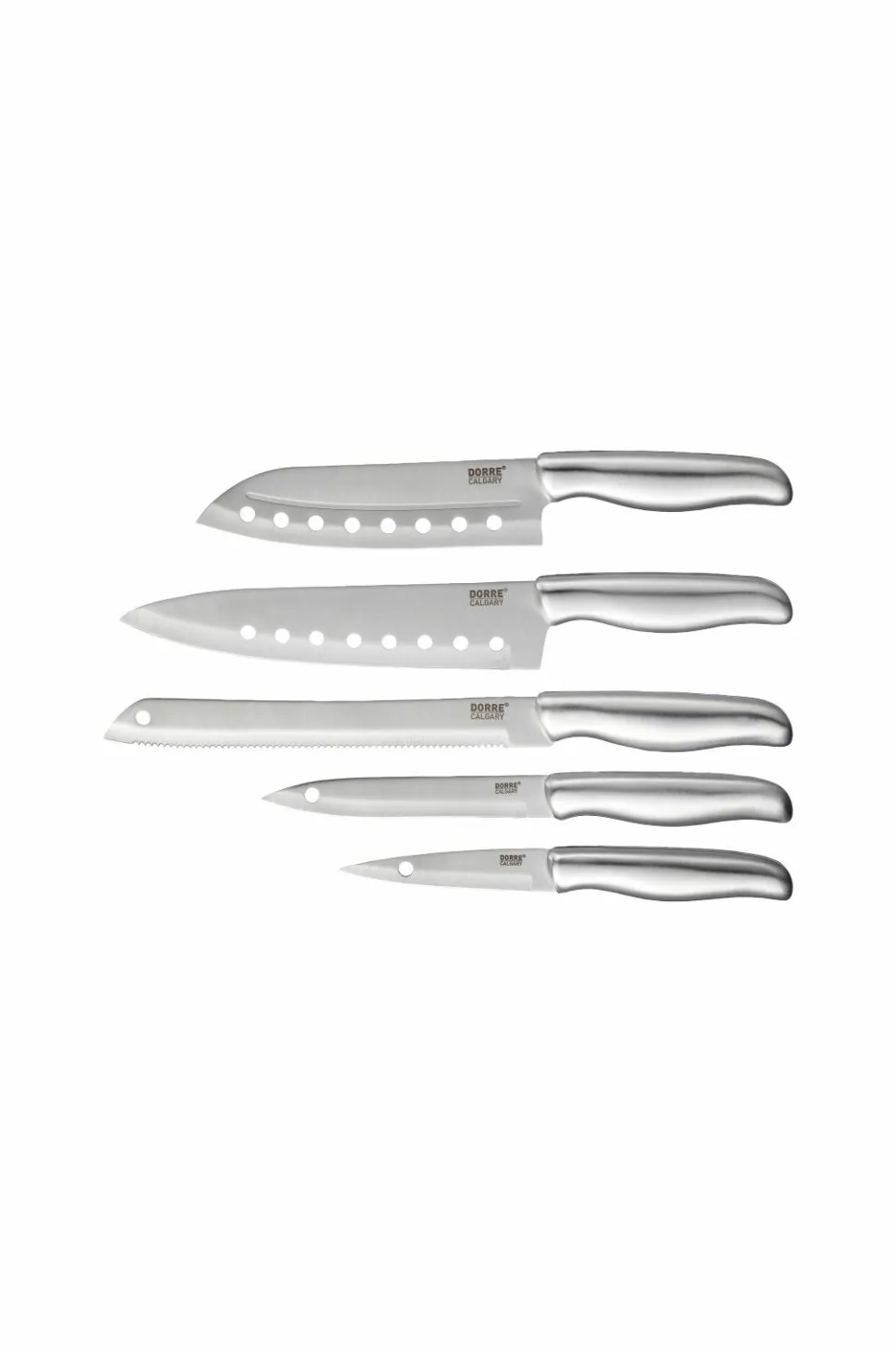 Calgary Knivsæt i stål, 5 knive, japansk kokkekniv, brødkniv, universalkniv, skrællekniv