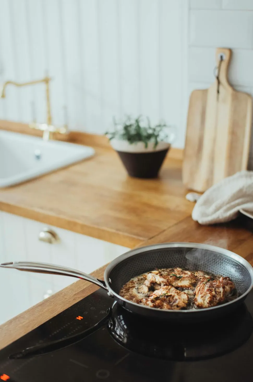 Stegepande ø28 cm keramisk belægning h:5,5 cm rustfrit stål