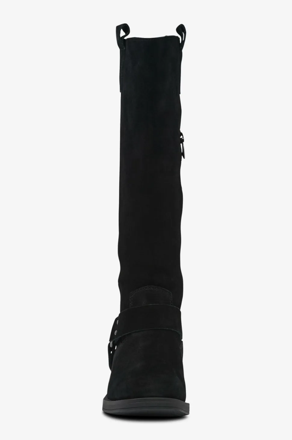 • Støvler i ruskind med dekorative remme på skaftet