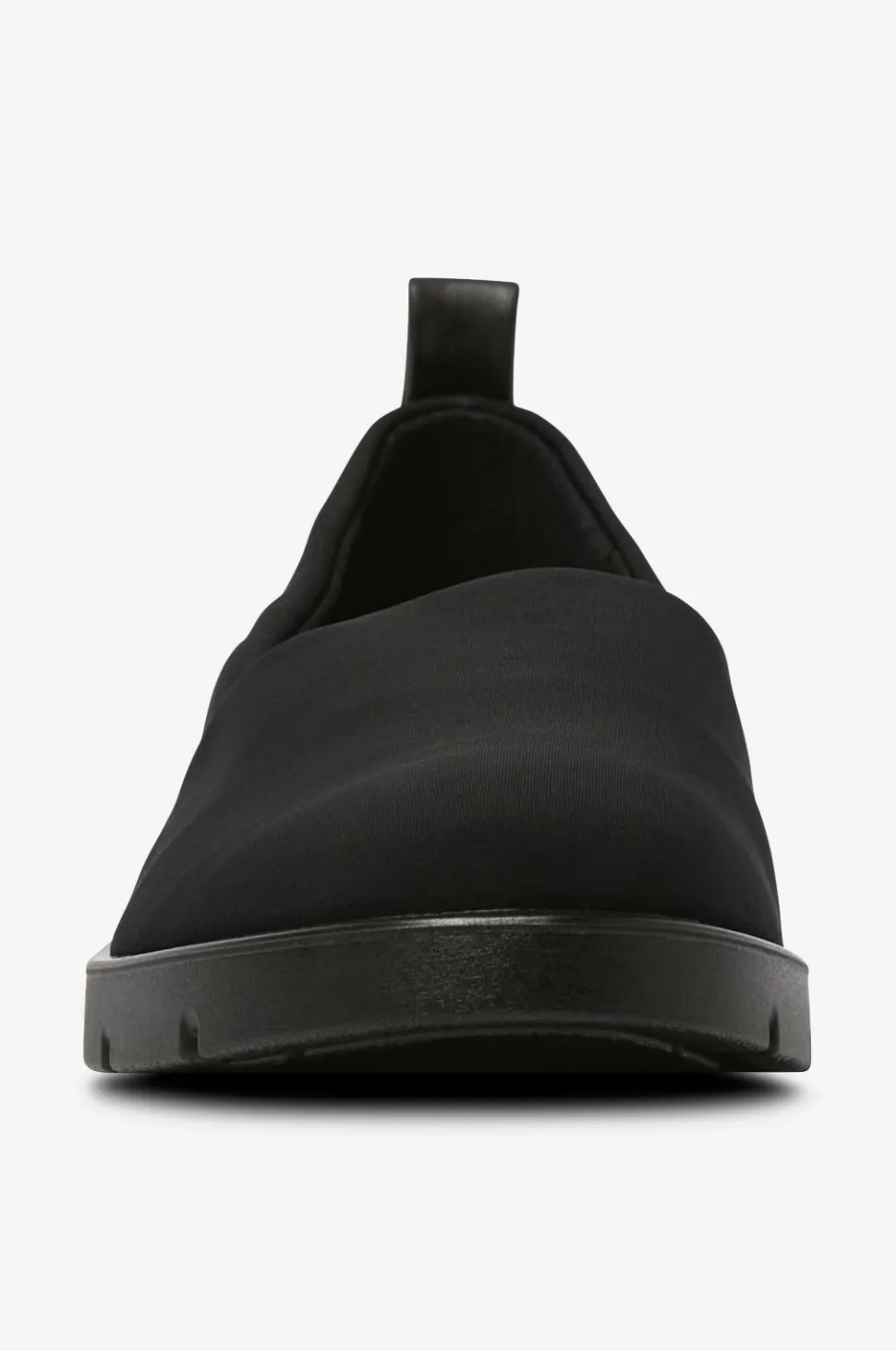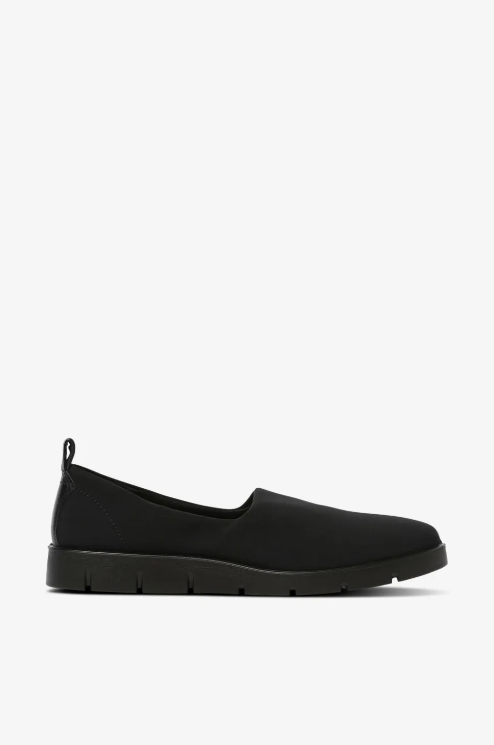 – Enkle, løse slip on-sko i stof med detaljer i skind