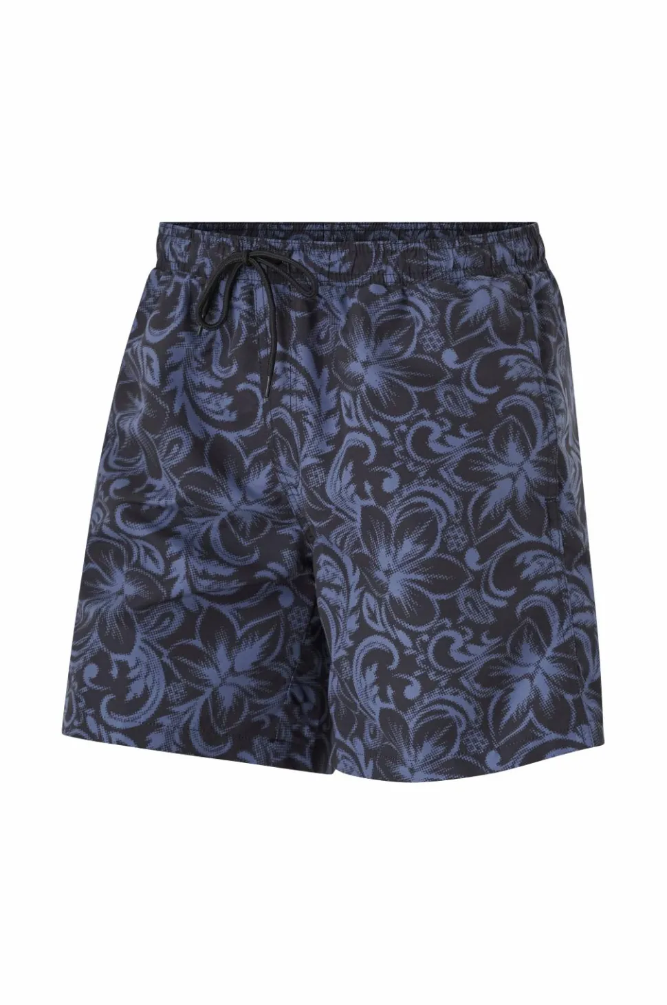 • Lange badeshorts i polyester med elastisk talje og træksnørre