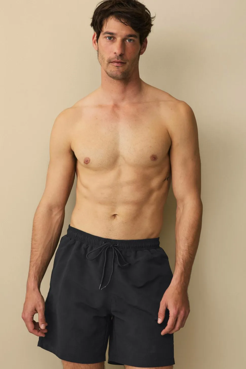 • Lange badeshorts i polyester med elastisk talje og træksnørre
