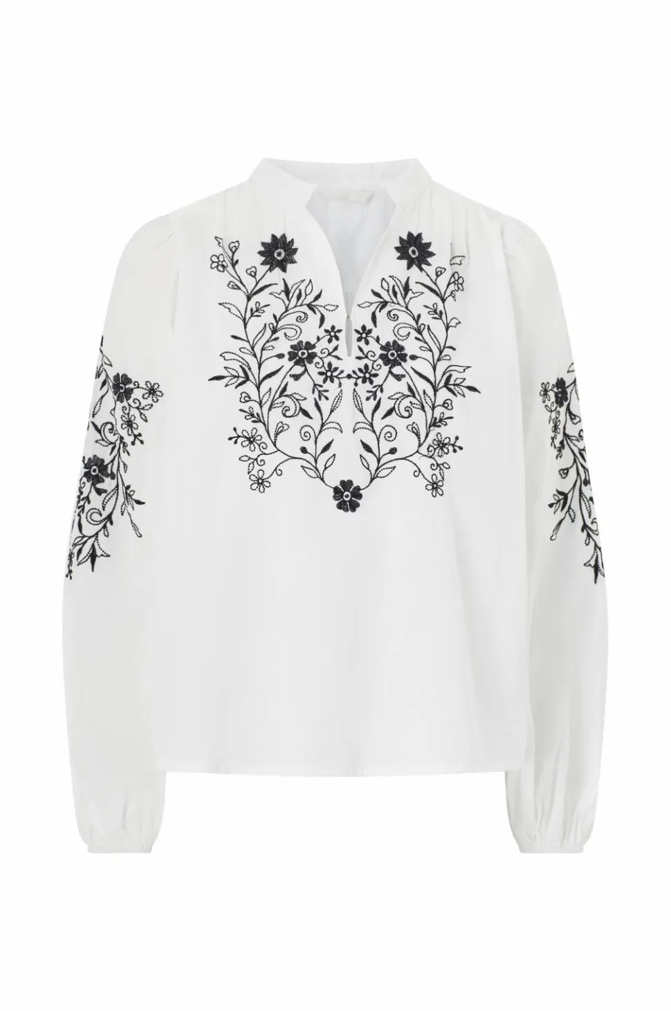 • Broderede blomstermønstere ved fronten og på ærmerne