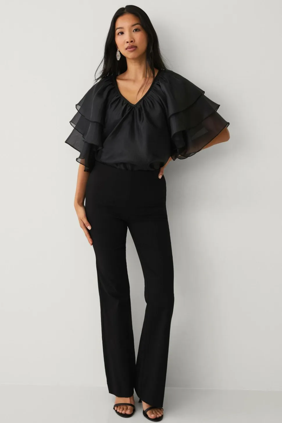 • Skinnende bluse i organza