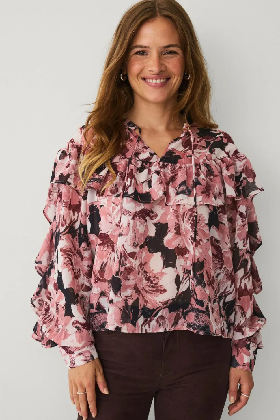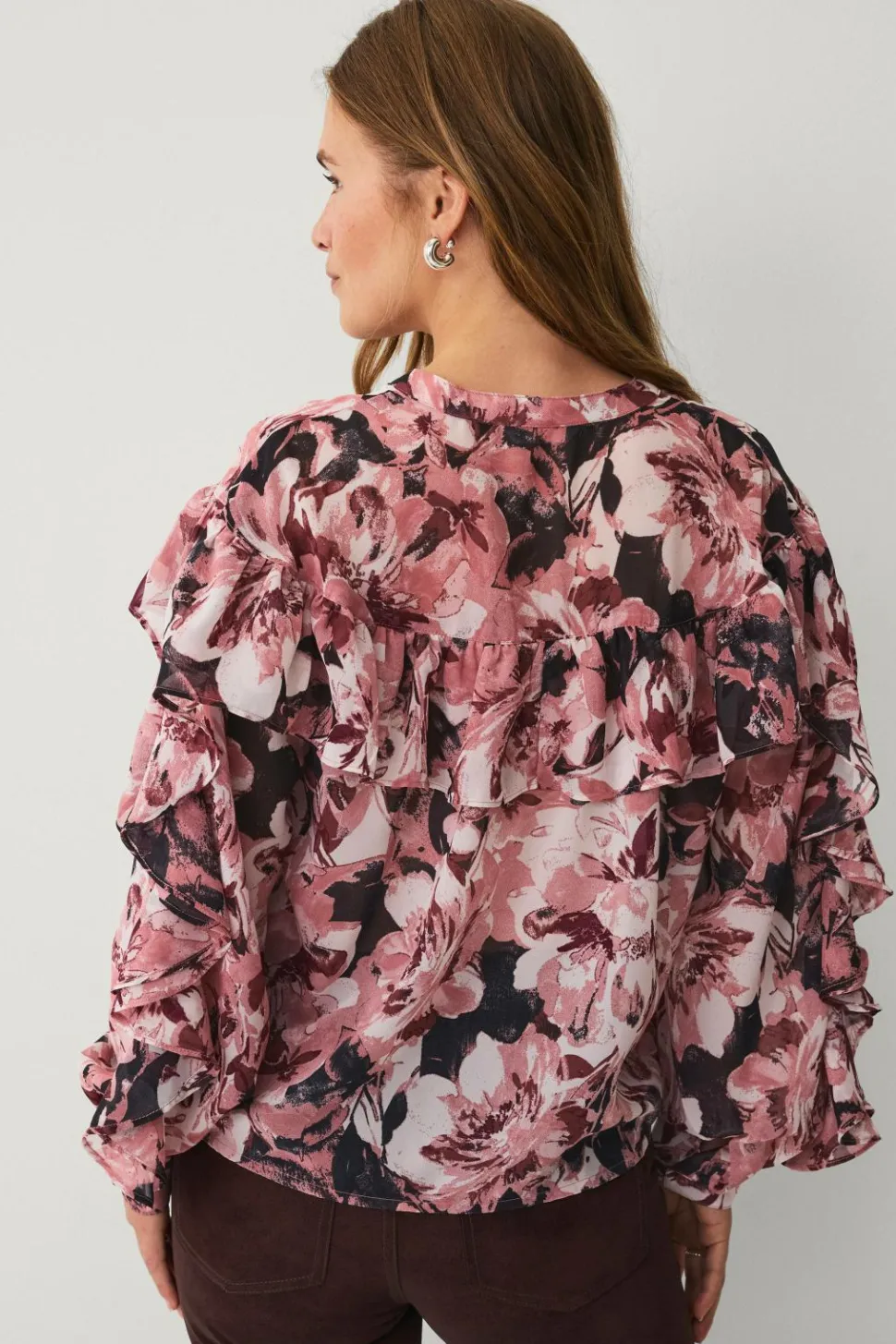 • Semitransparent chiffonbluse med løs pasform