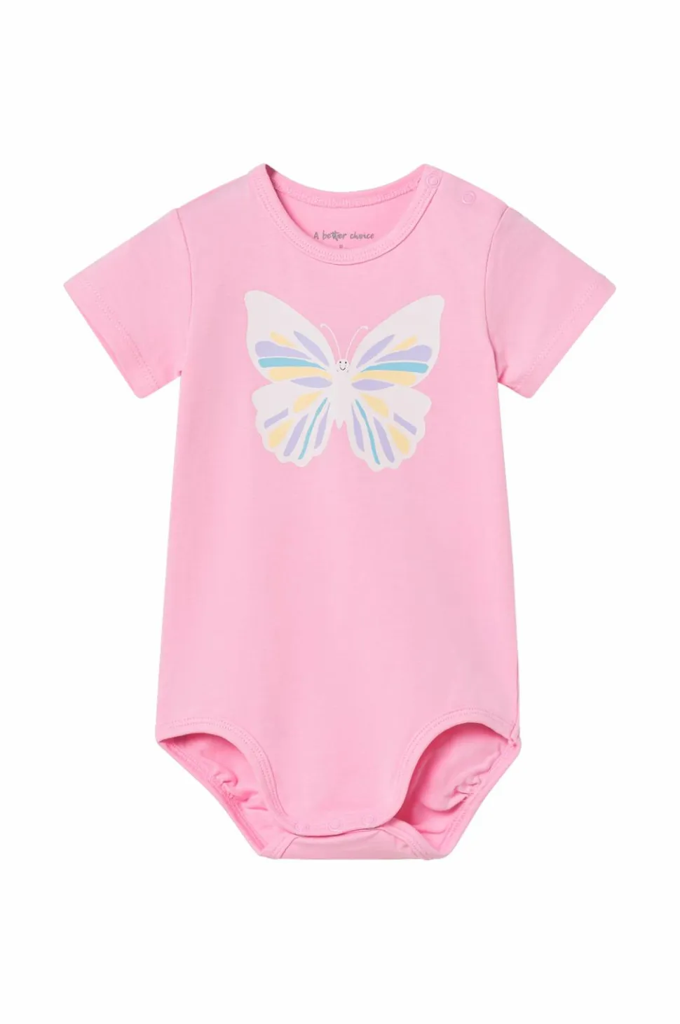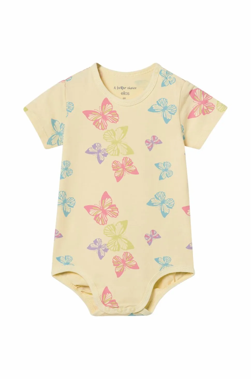 Kortærmet body i 2-pak med rund halsudskæring. Af blød bomuld. Trykknapper på den ene skulder og i skridtet.