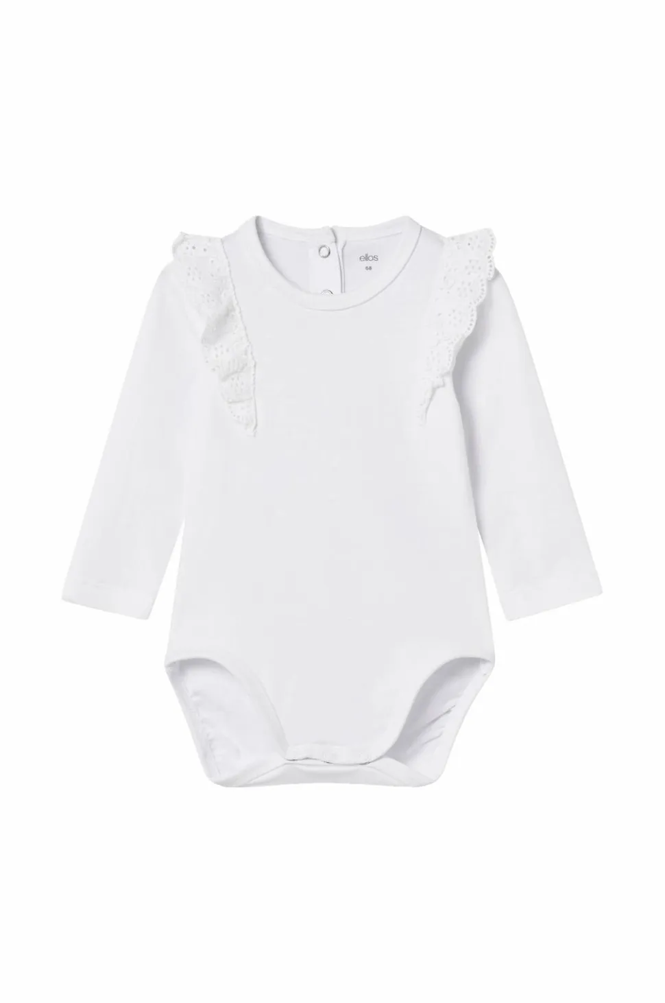 • Volanter med hulbroderi omkring skuldrene