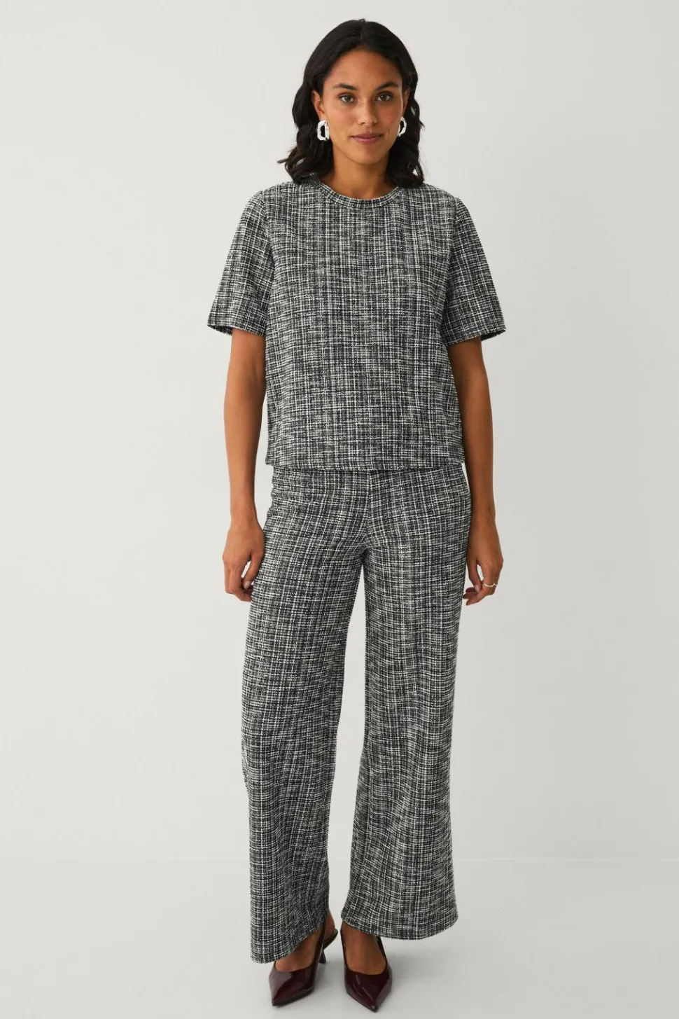 • Elastiske bukser med struktur i bouclé