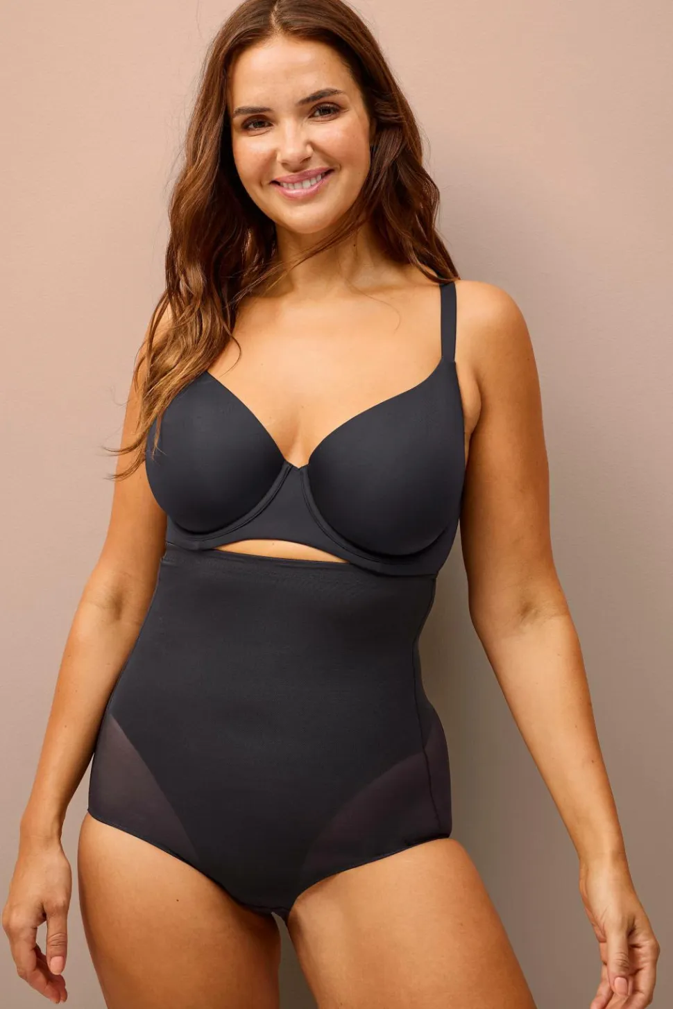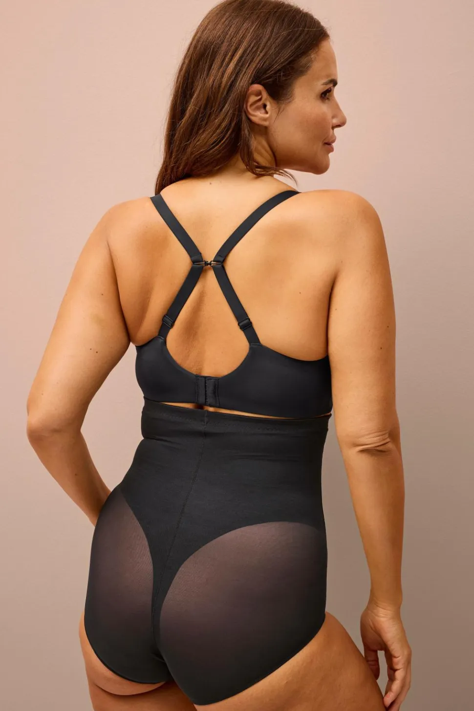 Højtaljede shaping-shorts med indvendig silikoneelastik, der bliver på plads. Den har en skulpturel, fastere støtte over taljen og maven. Konstrueret med minimale sømme for en sømløs, behagelig fornemmelse mod huden.