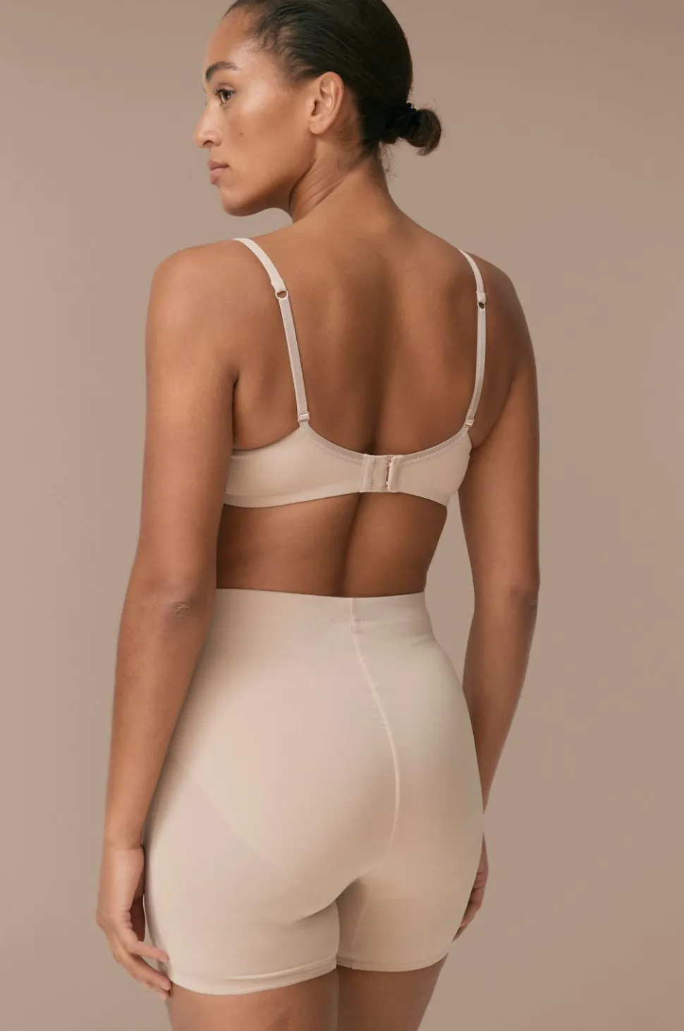 Formende shorts med ben, der har silikonebånd til at holde sig på plads. Elastik mellem balderne for at forme numsen pænt. Normal talje giver en behagelig pasform med formende effekt over maven. Fremhæver din silhuet uden at gå på kompromis med komforten.