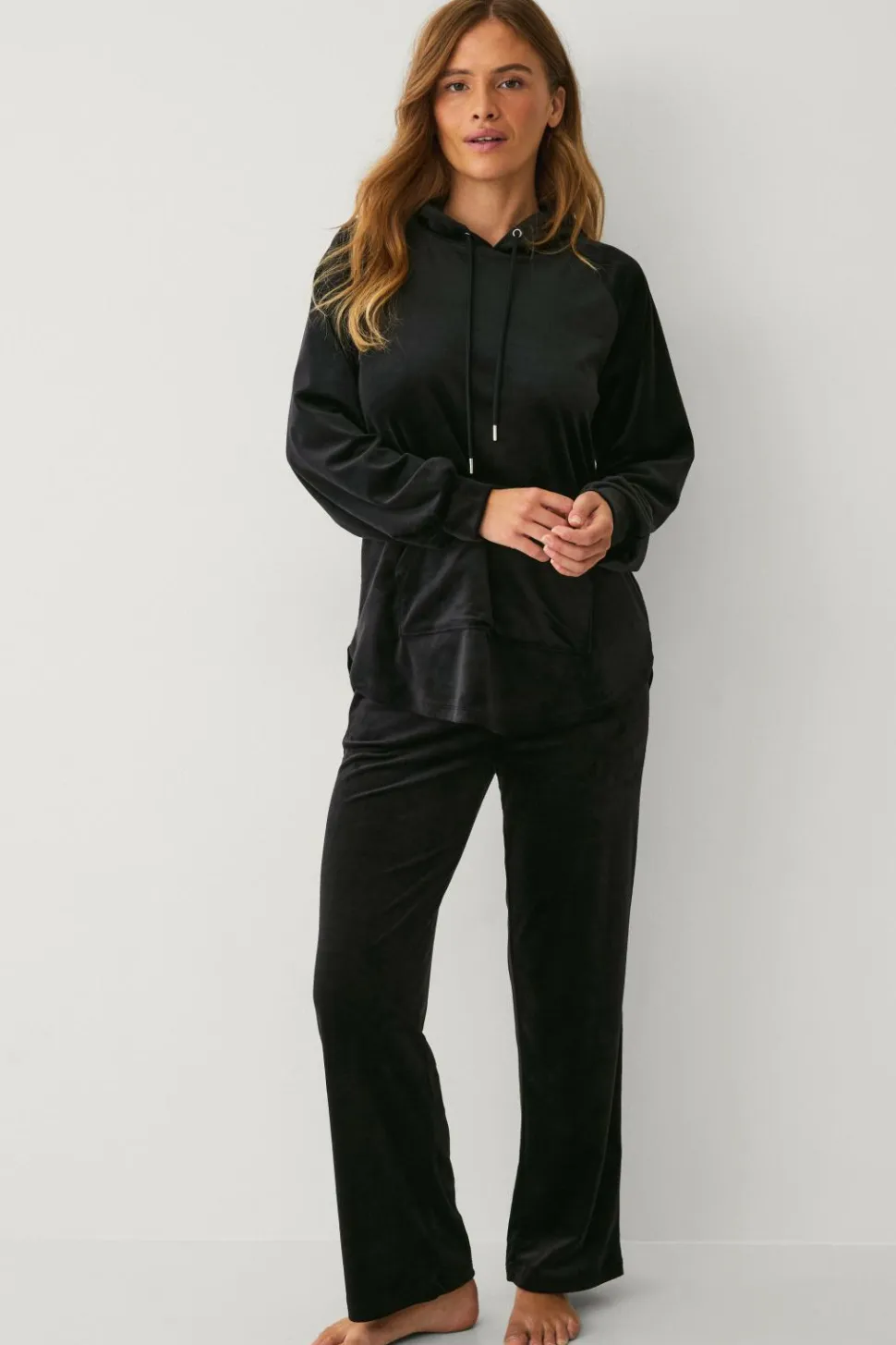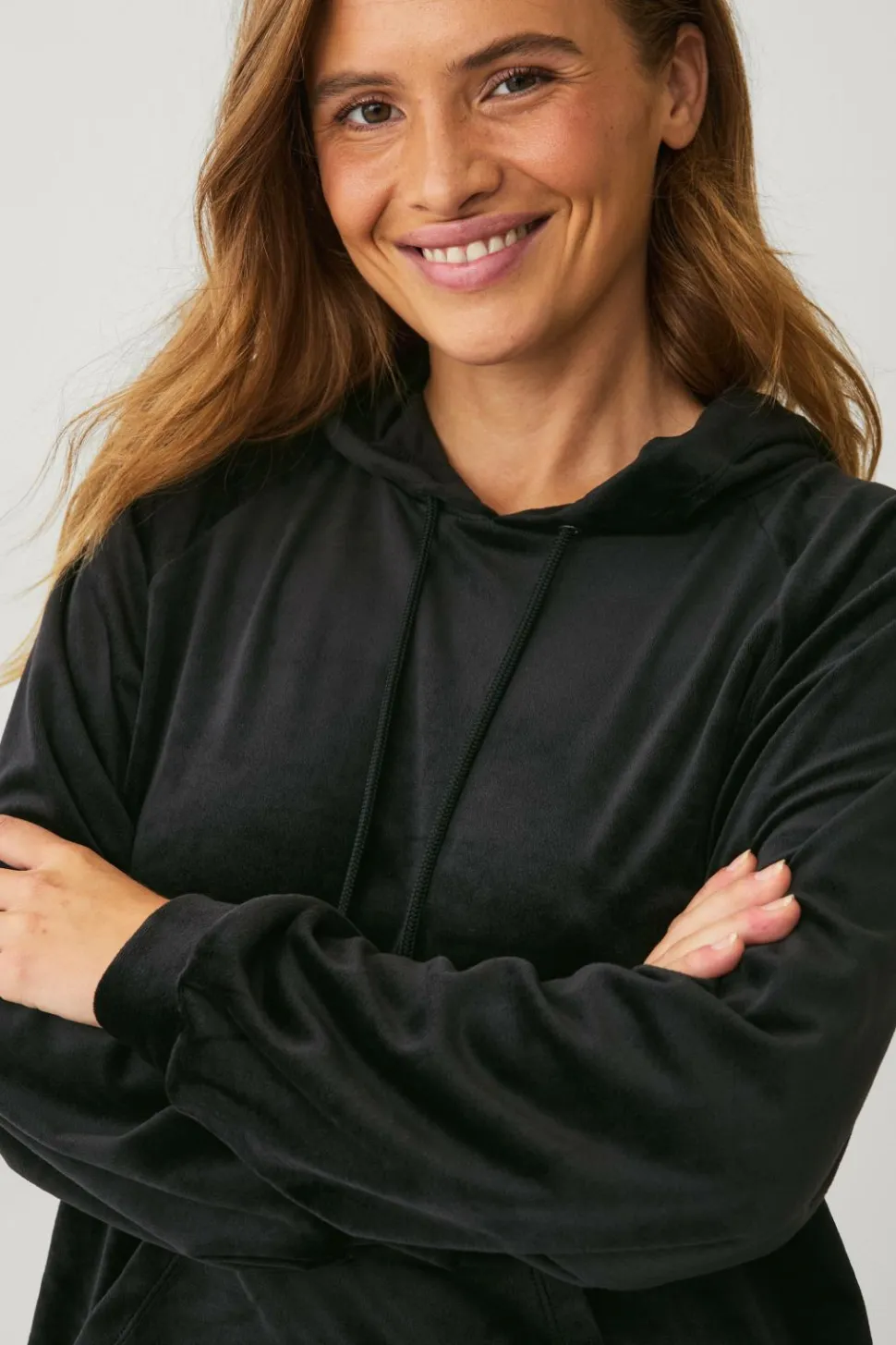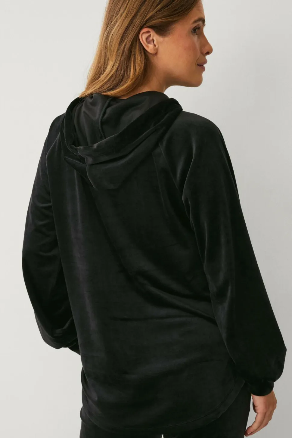 • Blød, elastisk hættetrøje i velour