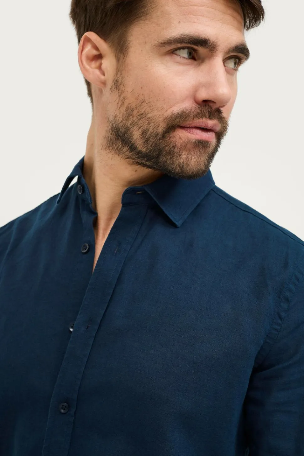 • Langærmet skjorte i kølig hørblanding