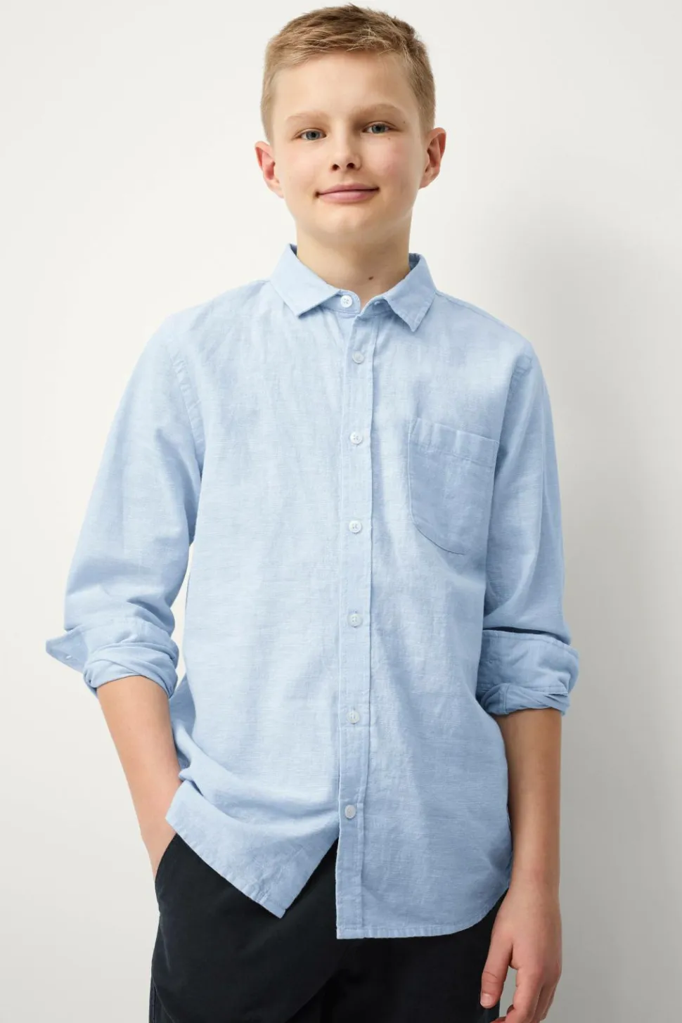 • Langærmet skjorte i hørblanding