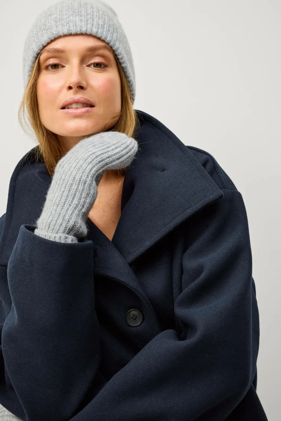 • Ribstrikket sæt med hue og vanter