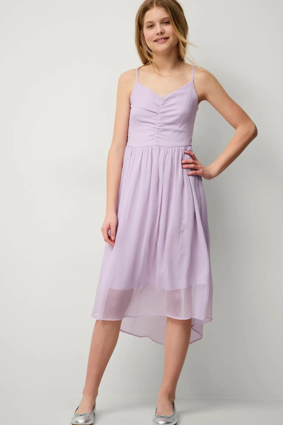 • Lang model med svaj i chiffon crepe