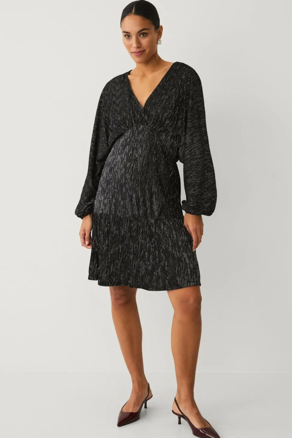 • Elastisk, plisseret kjole