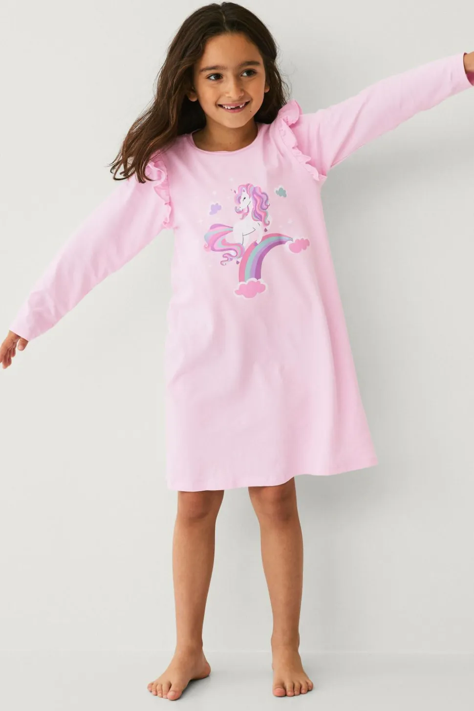 • Langærmet natkjole i blød, elastisk bomuld