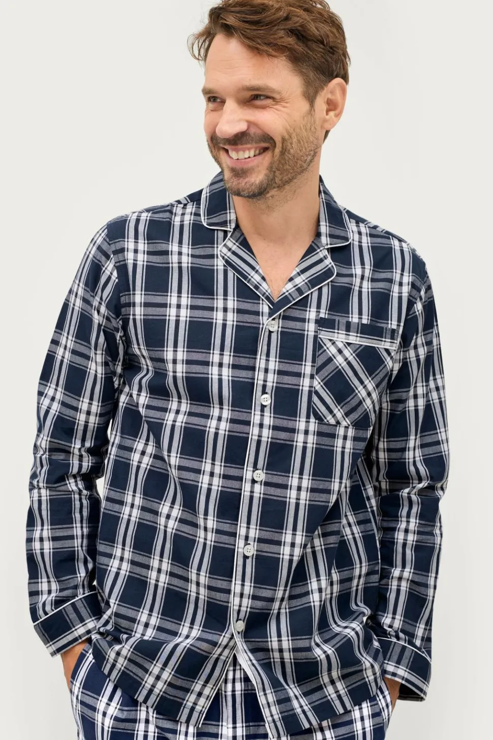 Todelt pyjamas i blød, vævet kvalitet med klassiske tern. Langærmet skjorte med krave og revers, knapper foran og en brystlomme. Bukserne har en elastisk talje med løbegang og lommer i siderne.