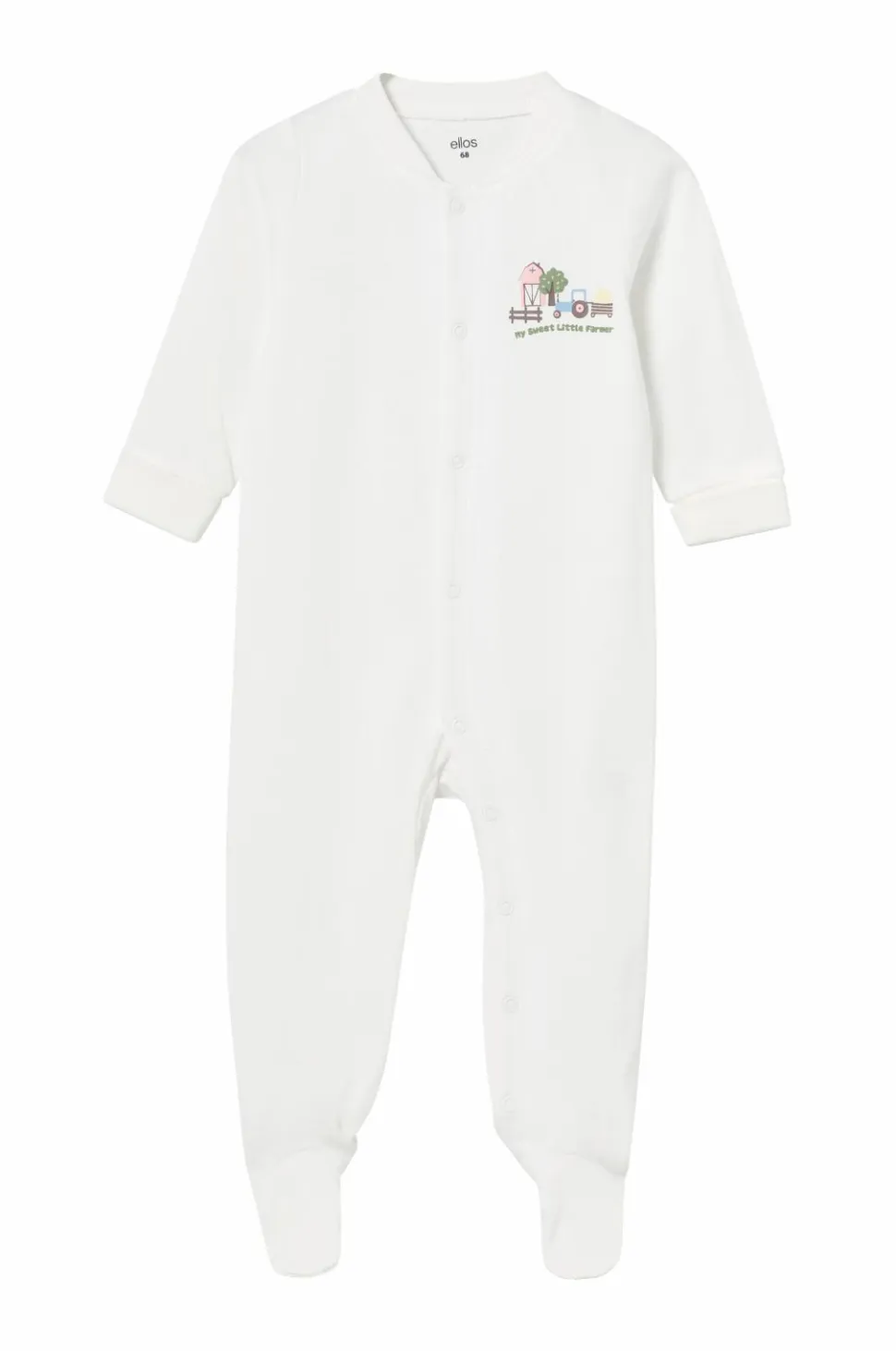 • Den mønstrede pyjamasjumpsuit har foldbare ribkanter ved benafslutningerne, og den hvide har hele fødder.
