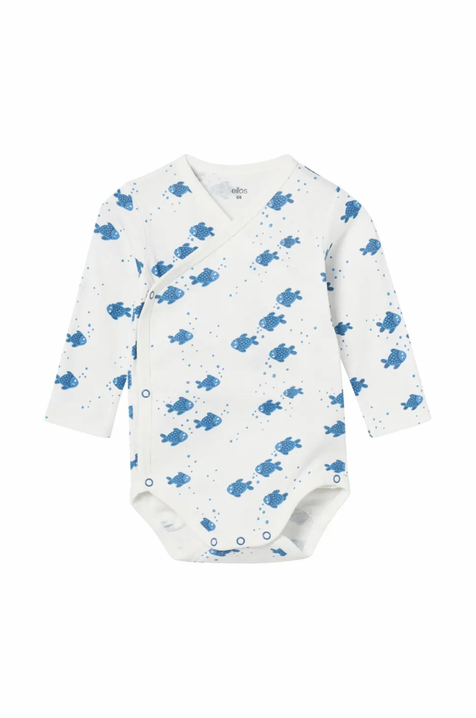 2 langærmede slå om-bodyer med trykknapper foran og i skridtet