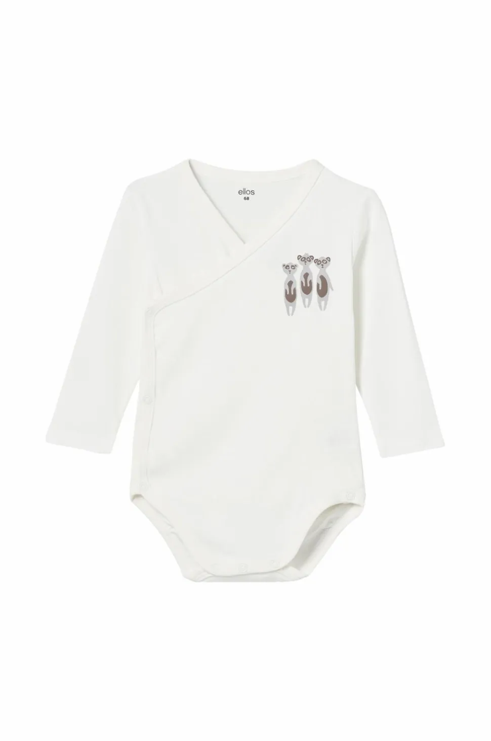 2 langærmede slå om-bodyer med trykknapper foran og i skridtet